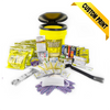 Kit Contains: • Honey Bucket w/Lid • 4 – 2400 Calorie Food Bars • 4 – Solar Blankets • 24 – Pouches of Waters • 4 – Dust Masks • 4 – Ponchos • 12 Pack of Liners • 6 – Wet Naps • 12 Hour Light Stick • T-5 Chemical Toilet Disinfectant • Roll 10 yards Duct Tape • Gas & Water Shut Off Tool • 15" Pry Bar • 54 Piece First Aid Kit • Dynamo flashlight/Radio • Pair Leather Palm Gloves • Utility Knife • 5 N 1 Whistle • Water Purification Tablets • Water Proof Matches