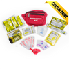 Kit Contains: • 1 – 2 Pocket Fanny Pack • 3 – Mayday Water Pouches • 1- 400 Calorie Food Bar • 1 – Whistle w/ lanyard • 1 – Solar Blanket • 1 – Poncho • 1 – 12hr. Lightsticks • 1 – Dust Mask • 1- Hand Power Flashlight • 1 – 8 piece First Aid Kit